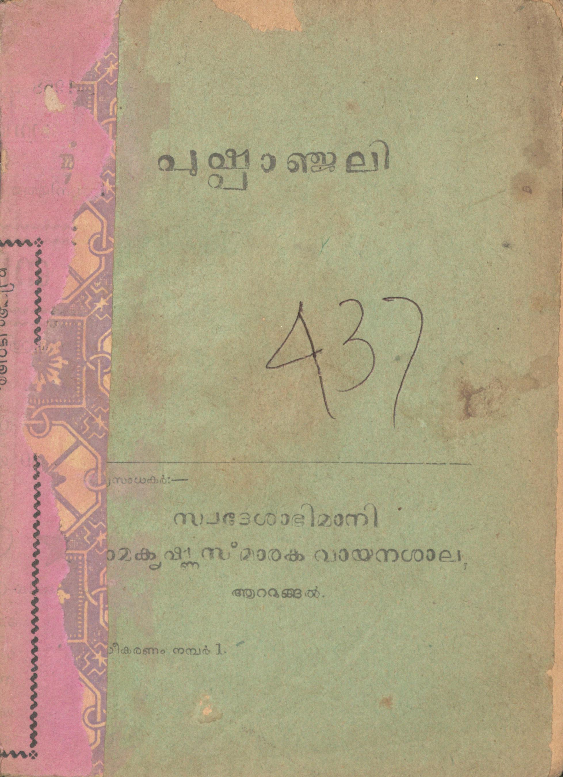 1931-ൽ പ്രസിദ്ധീകരിച്ച, തൈയ്ക്കാട്ടു ചന്ദ്രശേഖരൻ നായർ എഴുതിയ പുഷ്പാഞ്ജലി എന്ന പുസ്തകത്തിൻ്റെ സ്കാൻ ആണ് ഈ പോസ്റ്റിലൂടെ പങ്കു വെക്കുന്നത്