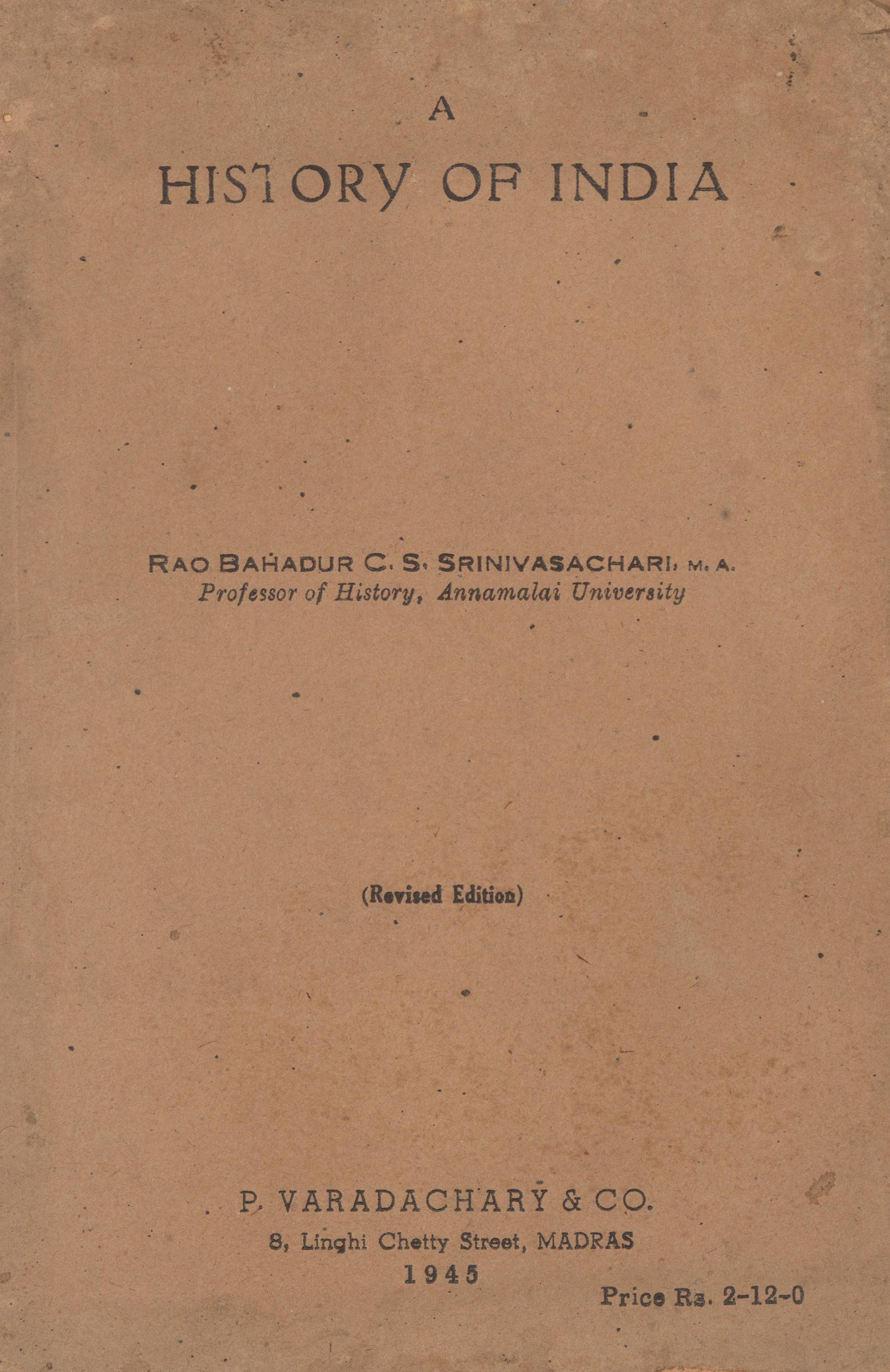 Through this post, we are releasing the digital scan of A History of India written by C.S. Srinivasachari published in the year 1945.
