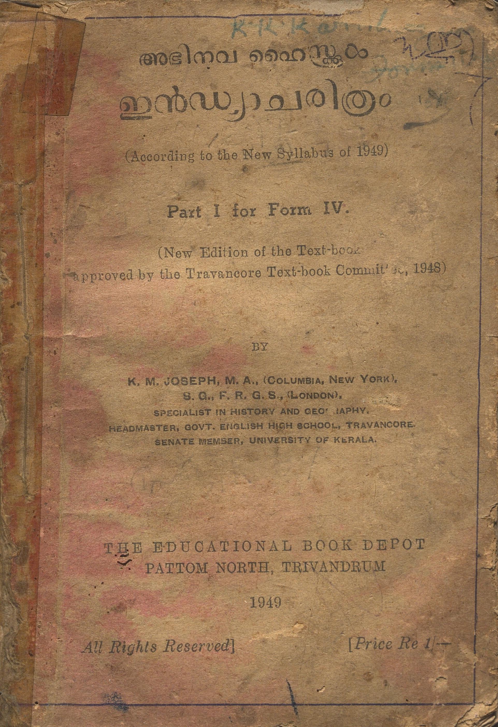 1949-ൽ പ്രസിദ്ധീകരിച്ച, ഇൻഡ്യാ ചരിത്രം Part 1 Form 4 എന്ന പാഠപുസ്തകത്തിൻ്റെ സ്കാൻ ആണ് ഈ പോസ്റ്റിലൂടെ പങ്കു വെക്കുന്നത്.