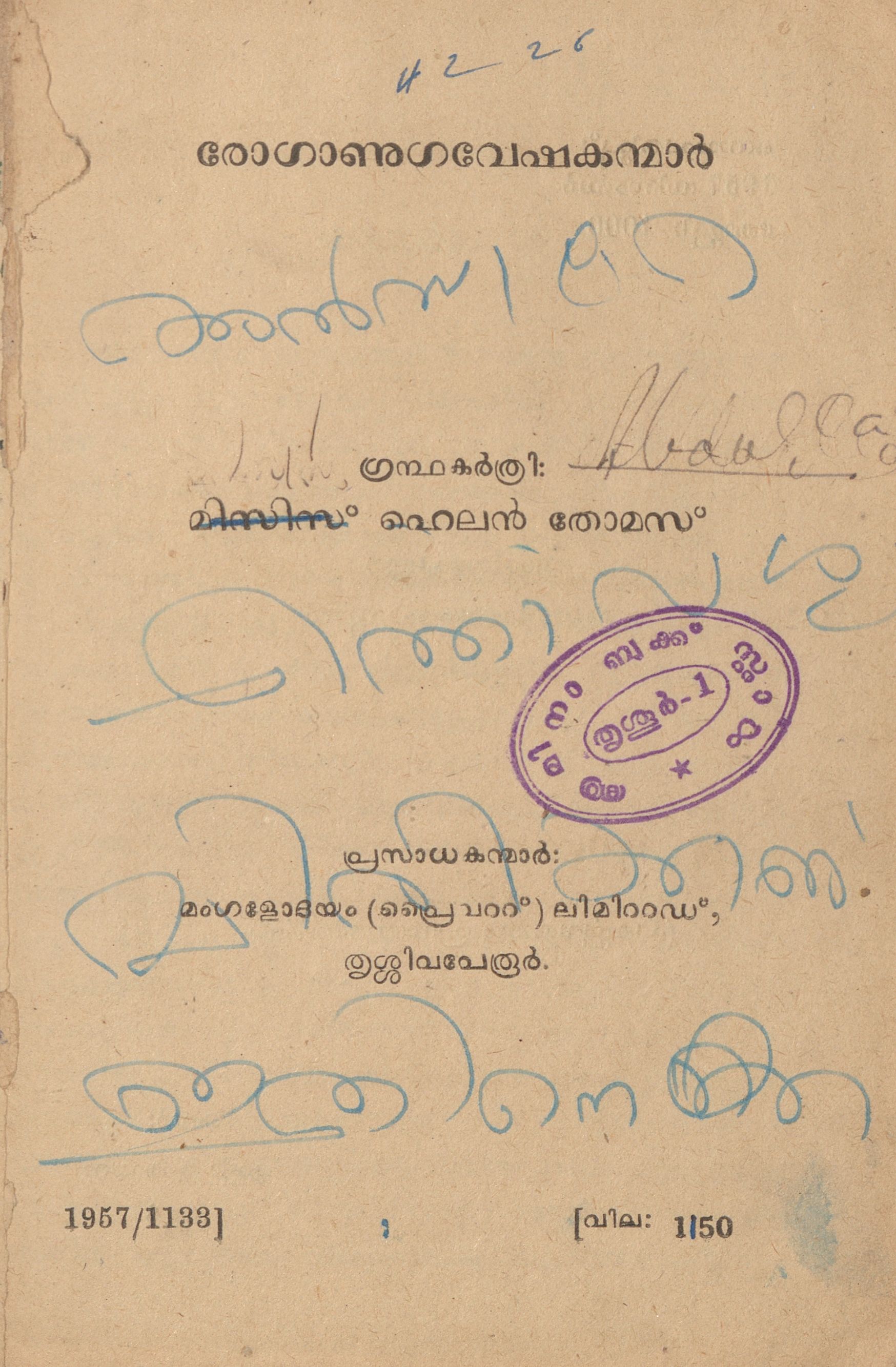 1957 ൽ പ്രസിദ്ധീകരിച്ച, ഹെലൻ തോമസ് രചിച്ച രോഗാണു ഗവേഷകന്മാർ എന്ന പുസ്തകത്തിൻ്റെ സ്കാൻ ആണ് ഈ പോസ്റ്റിലൂടെ പങ്കു വെക്കുന്നത്.