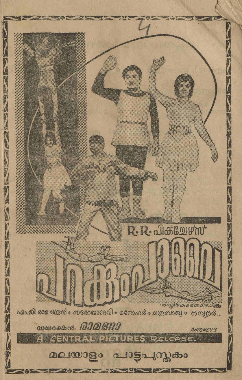 1966 ൽ എം. ജി. ആർ, എം. എൻ. നമ്പ്യാർ, ബി. സരോജാ ദേവി, കാഞ്ചന തുടങ്ങിയവർ അഭിനയിച്ച, രാമണ്ണാ സംവിധാനം ചെയ്ത പറക്കുംപാവൈ എന്ന സിനിമയുടെ കഥാ സാരവും പാട്ടുകളും ഉൾപ്പെടുത്തി പ്രസിദ്ധീകരിച്ച സിനിമാ പാട്ടു പുസ്തകത്തിൻ്റെ സ്കാനാണ് ഈ പോസ്റ്റിലൂടെ പങ്കു വെക്കുന്നത്.