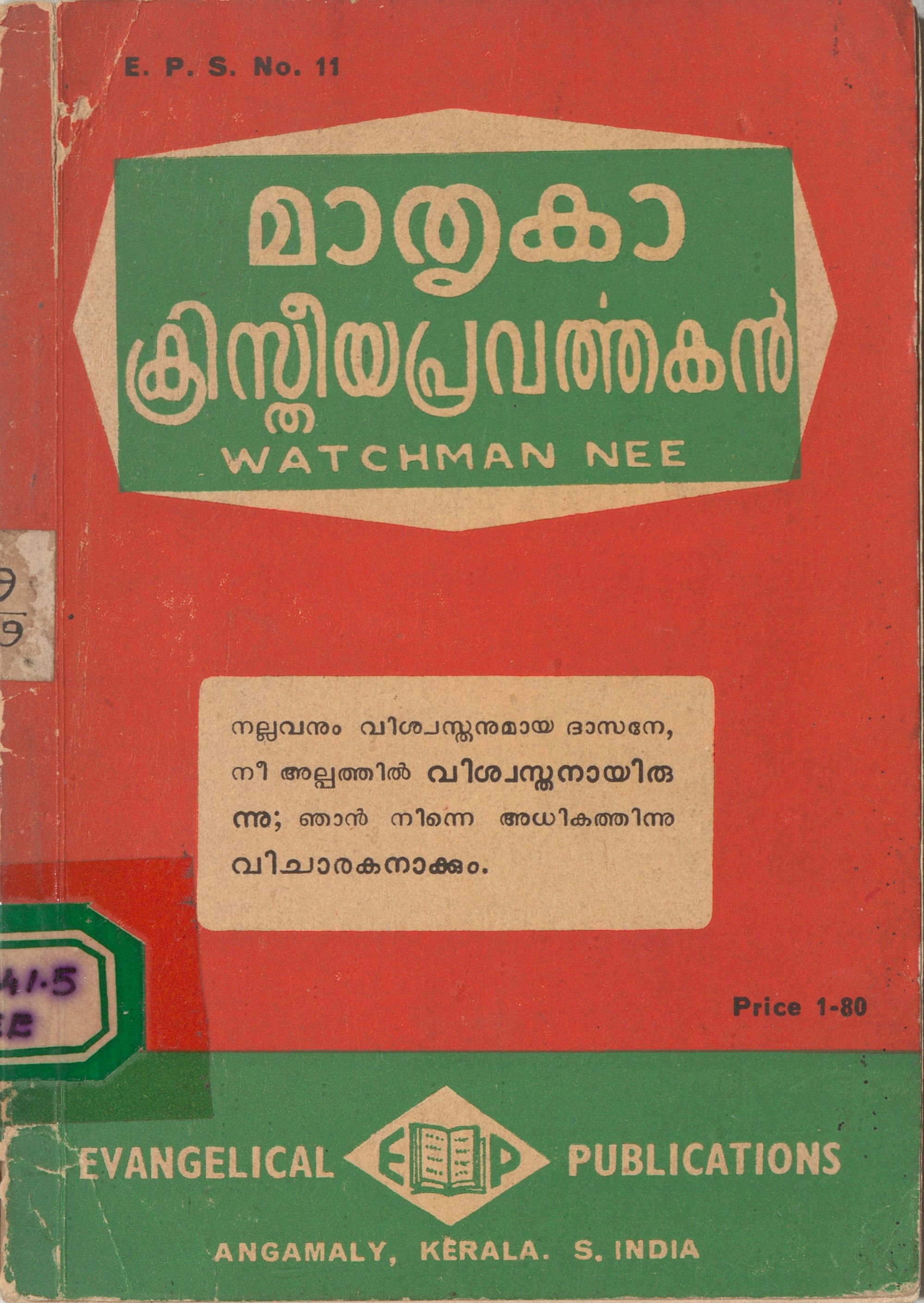 1971 –ൽ പ്രസിദ്ധീകരിച്ച, Watchmann Nee രചിച്ച മാതൃകാ ക്രിസ്തീയ പ്രവർത്തകൻ എന്ന പുസ്തകത്തിൻ്റെ സ്കാൻ ആണ് ഈ പോസ്റ്റിലൂടെ പങ്കു വെക്കുന്നത്.