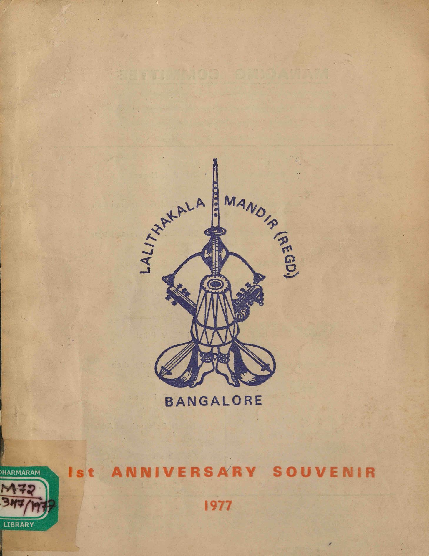 ബാംഗളൂർ ലളിതകലാമന്ദിർ അതിൻ്റെ ഒന്നാം വാർഷികത്തോടനുബന്ധിച്ച് 1977 ൽ പുറത്തിറക്കിയ