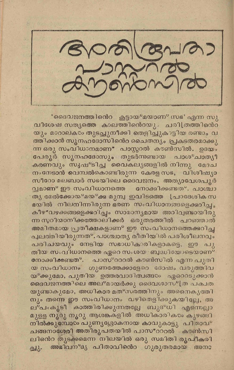 1985 ജൂലൈയിൽ ഇറങ്ങിയ വേദപ്രചാകരകൻ ആനുകാലികത്തിൽ സ്കറിയ സക്കറിയ രചിച്ച അതിരൂപതാ പാസ്റ്ററൽ കൗൺസിൽ എന്ന ലേഖനത്തിൻ്റെ സ്കാൻ ആണ് ഈ പോസ്റ്റിലൂടെ പങ്കുവെക്കുന്നത്.
