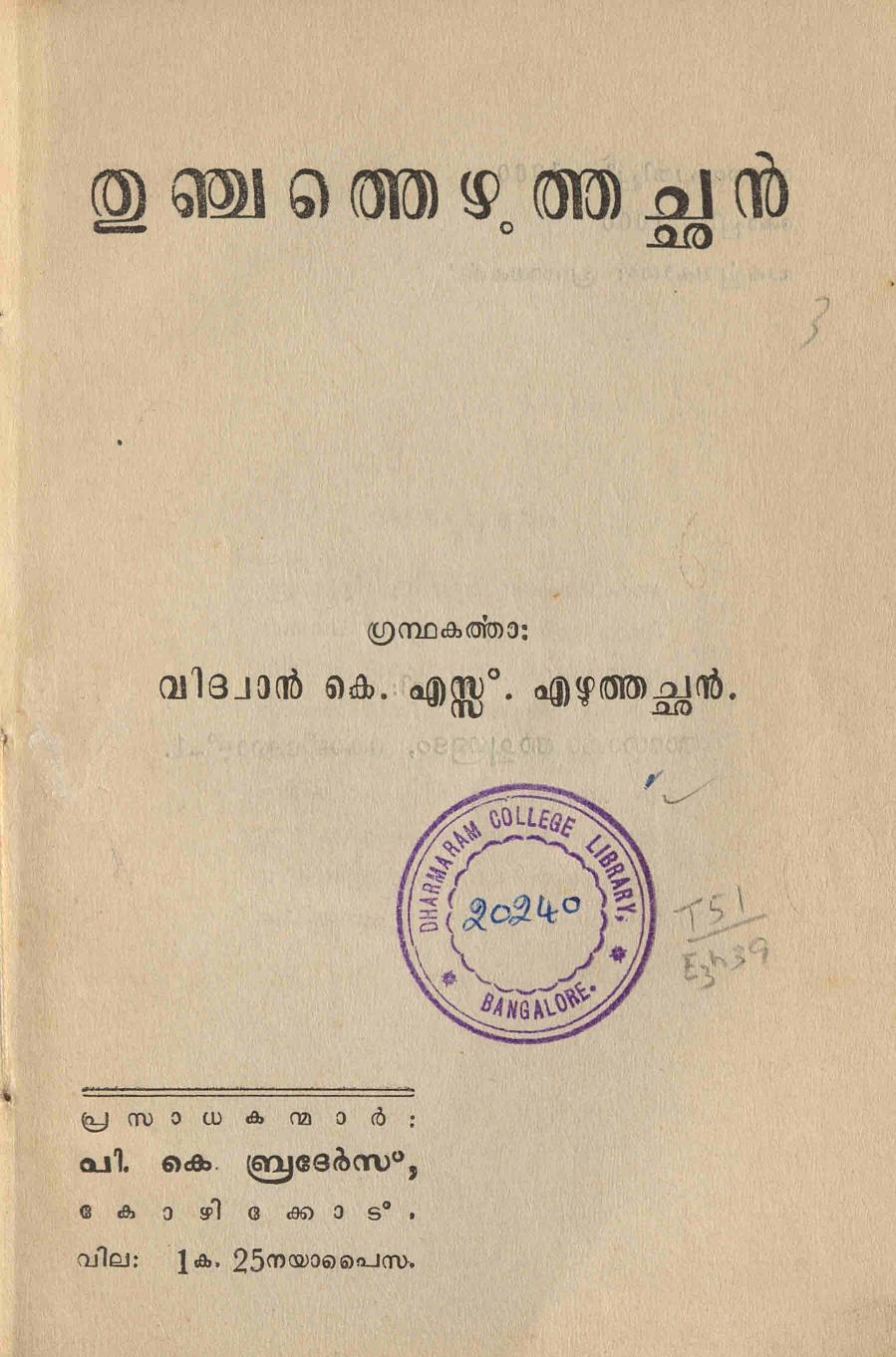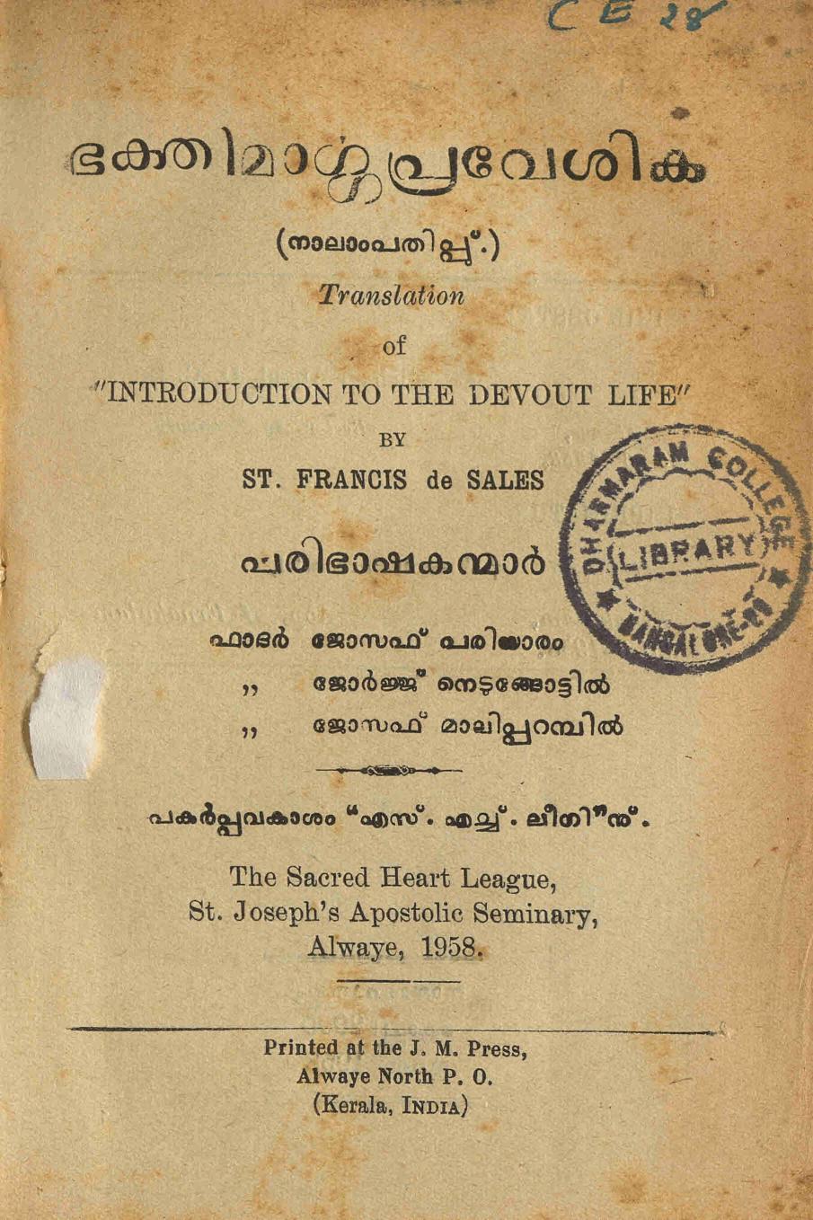 താഴെ പുസ്തകത്തിന്റെ മെറ്റാഡാറ്റയും ഡിജിറ്റൈസ് ചെയ്ത രേഖയിലേക്കുള്ള കണ്ണിയും കൊടുത്തിരിക്കുന്നു. (സ്കാൻ ഓൺലൈനായി വായിക്കാനുള്ള സൗകര്യം ഒരുക്കിയിട്ടുണ്ട്. അതേ പോലെ ആദ്യം കാണുന്ന ഇമേജിനു മുകളിൽ ക്ലിക്ക് ചെയ്താൽ ഡൗൺലോഡും ചെയ്യാം.)