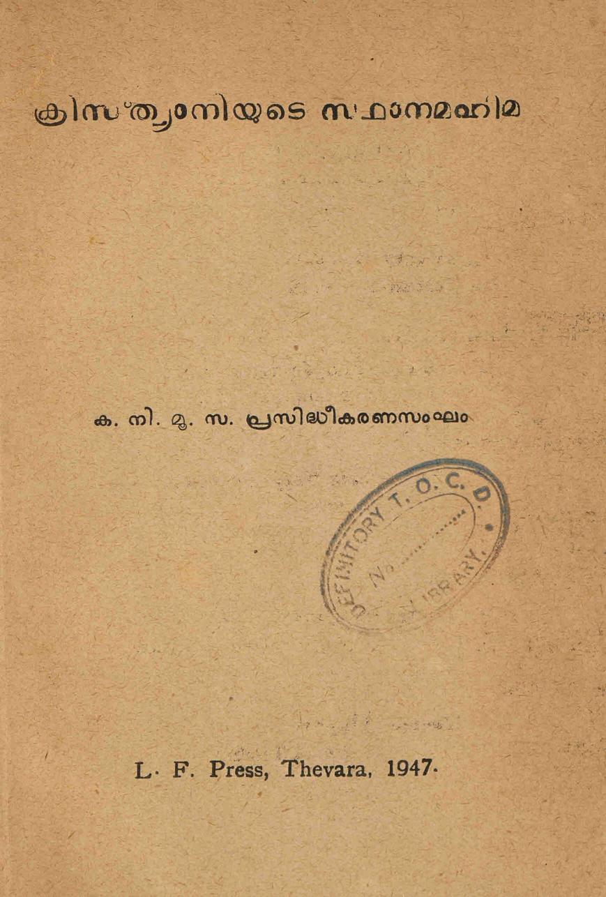 1947 – ക്രിസ്ത്യാനിയുടെ സ്ഥാനമഹിമ – കനിമൂസ പ്രസിദ്ധീകരണ സംഘം