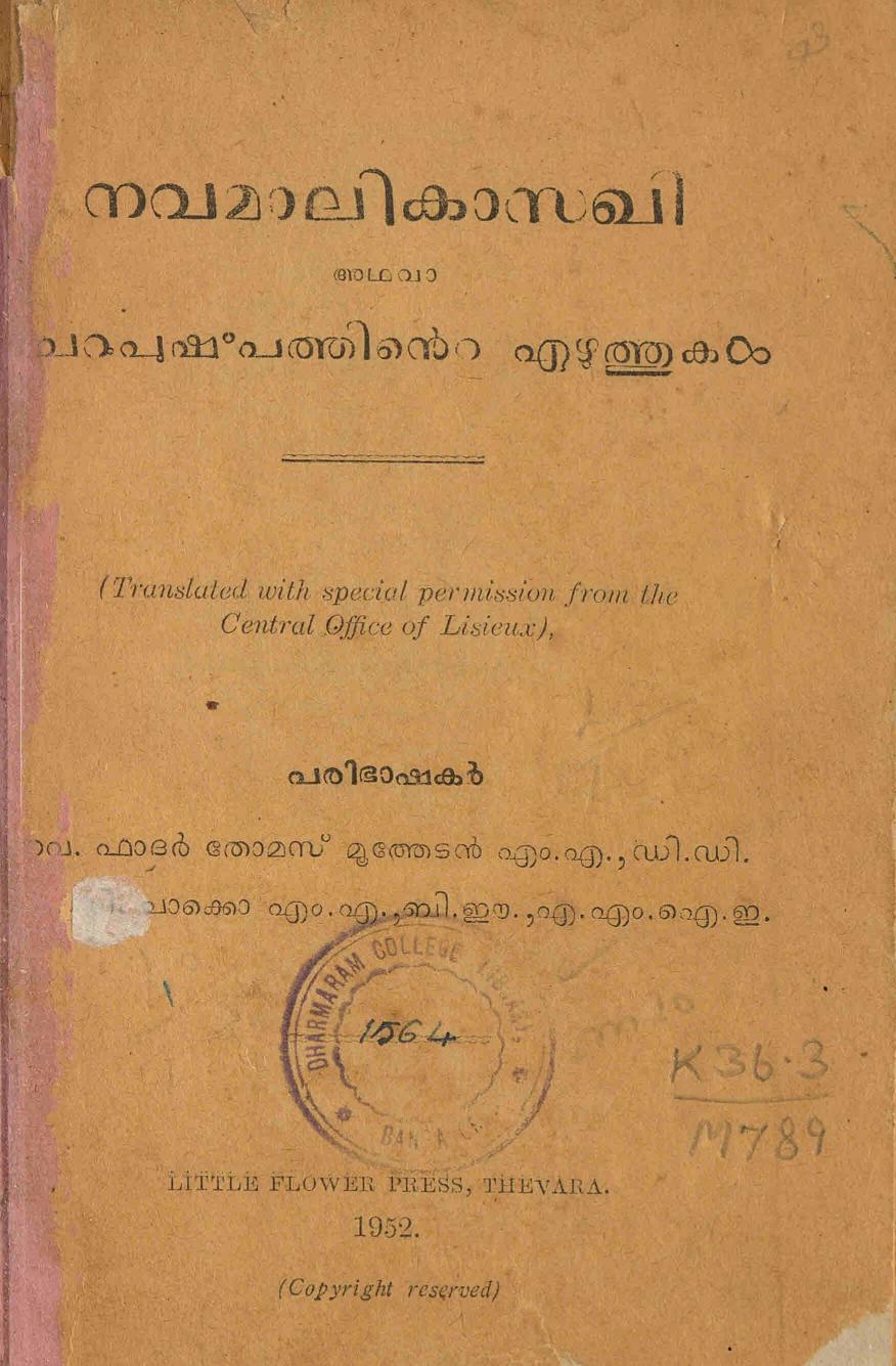 താഴെ പുസ്തകത്തിന്റെ മെറ്റാഡാറ്റയും ഡിജിറ്റൈസ് ചെയ്ത രേഖയിലേക്കുള്ള കണ്ണിയും കൊടുത്തിരിക്കുന്നു. (സ്കാൻ ഓൺലൈനായി വായിക്കാനുള്ള സൗകര്യം ഒരുക്കിയിട്ടുണ്ട്. അതേ പോലെ ആദ്യം കാണുന്ന ഇമേജിനു മുകളിൽ ക്ലിക്ക് ചെയ്താൽ ഡൗൺലോഡും ചെയ്യാം.)