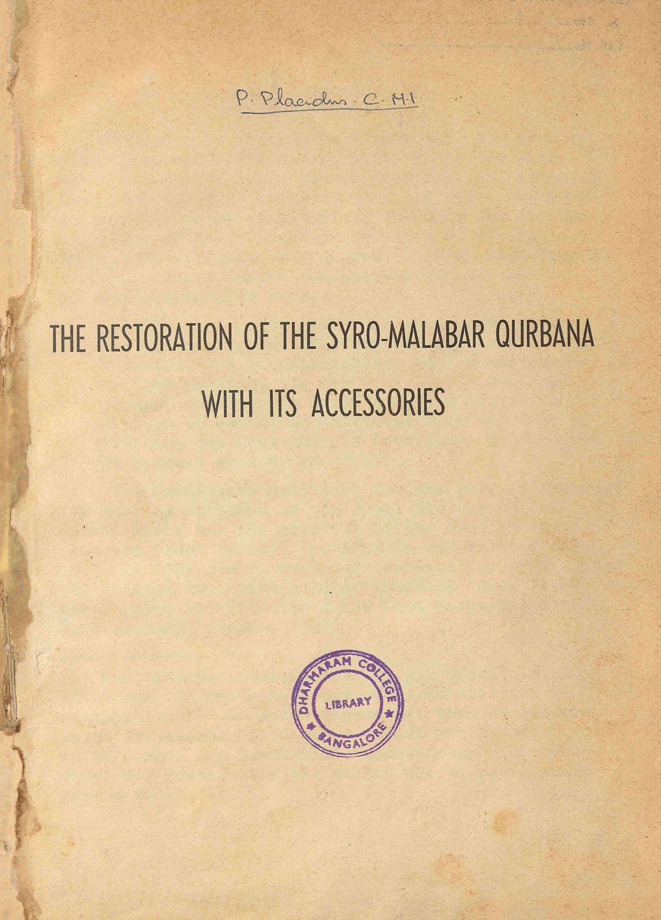 - Name: The Restoration of the Syro-Malabar Qurbana with its Accessories