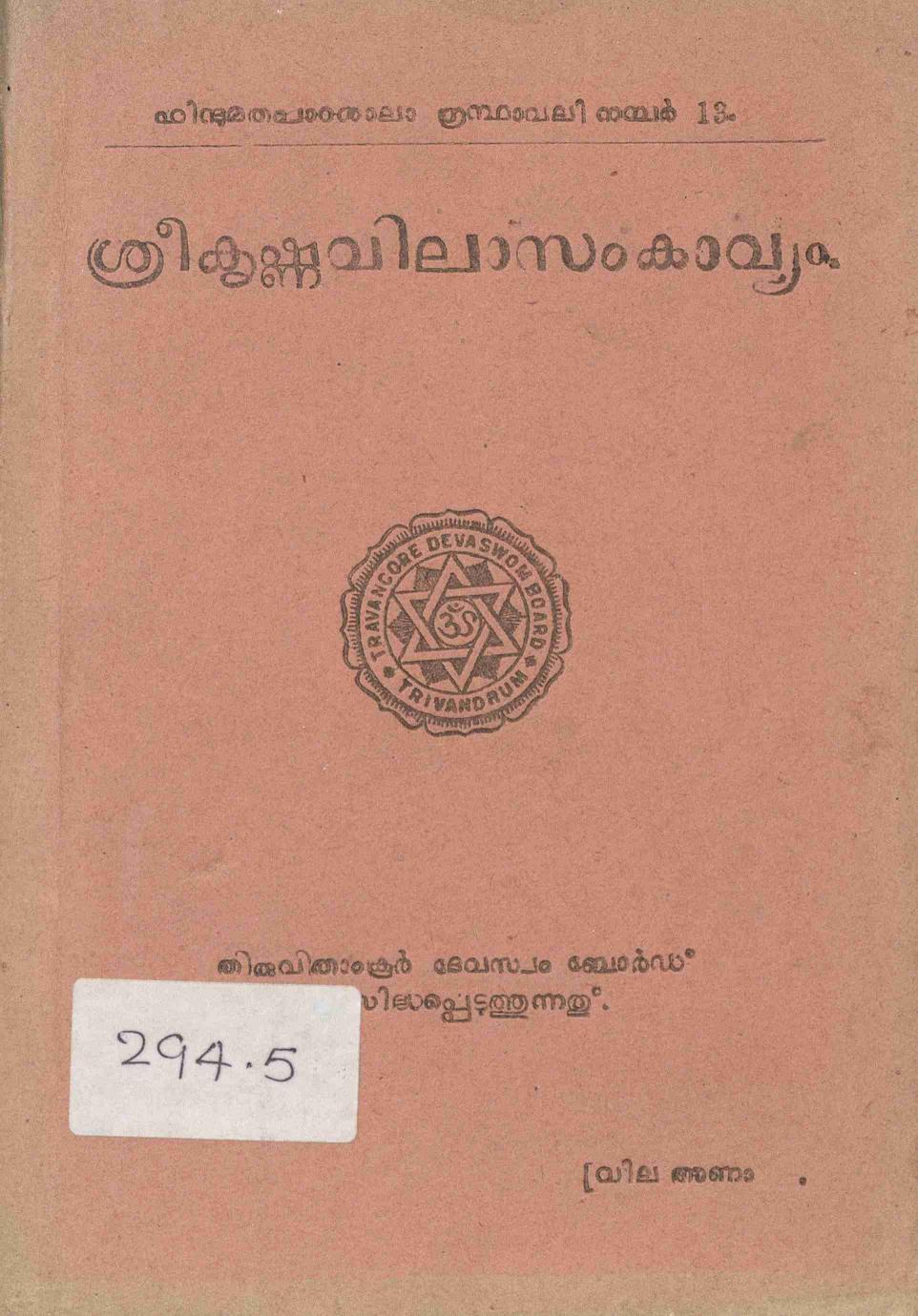 - പേര്: ശ്രീകൃഷ്ണവിലാസം കാവ്യം