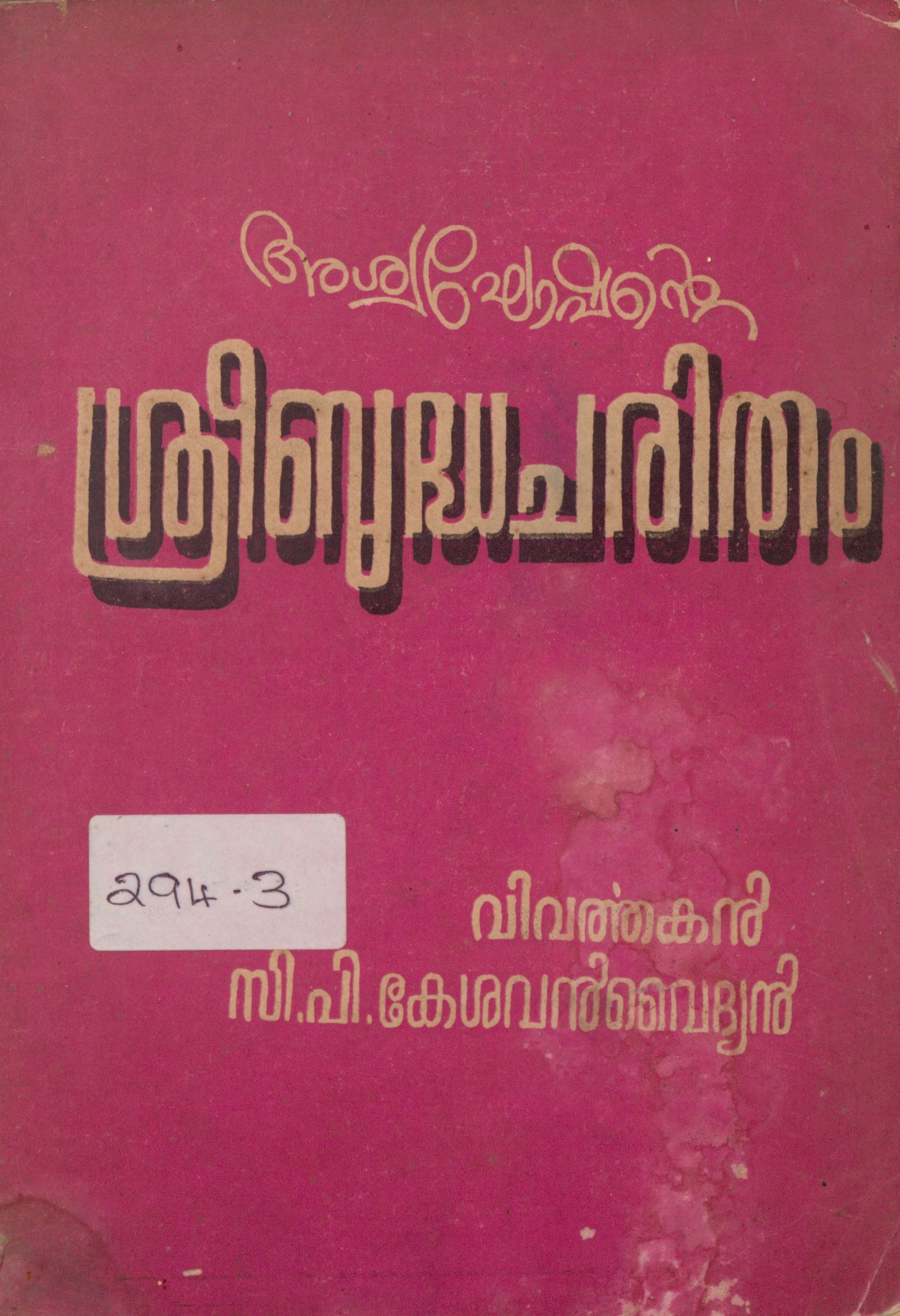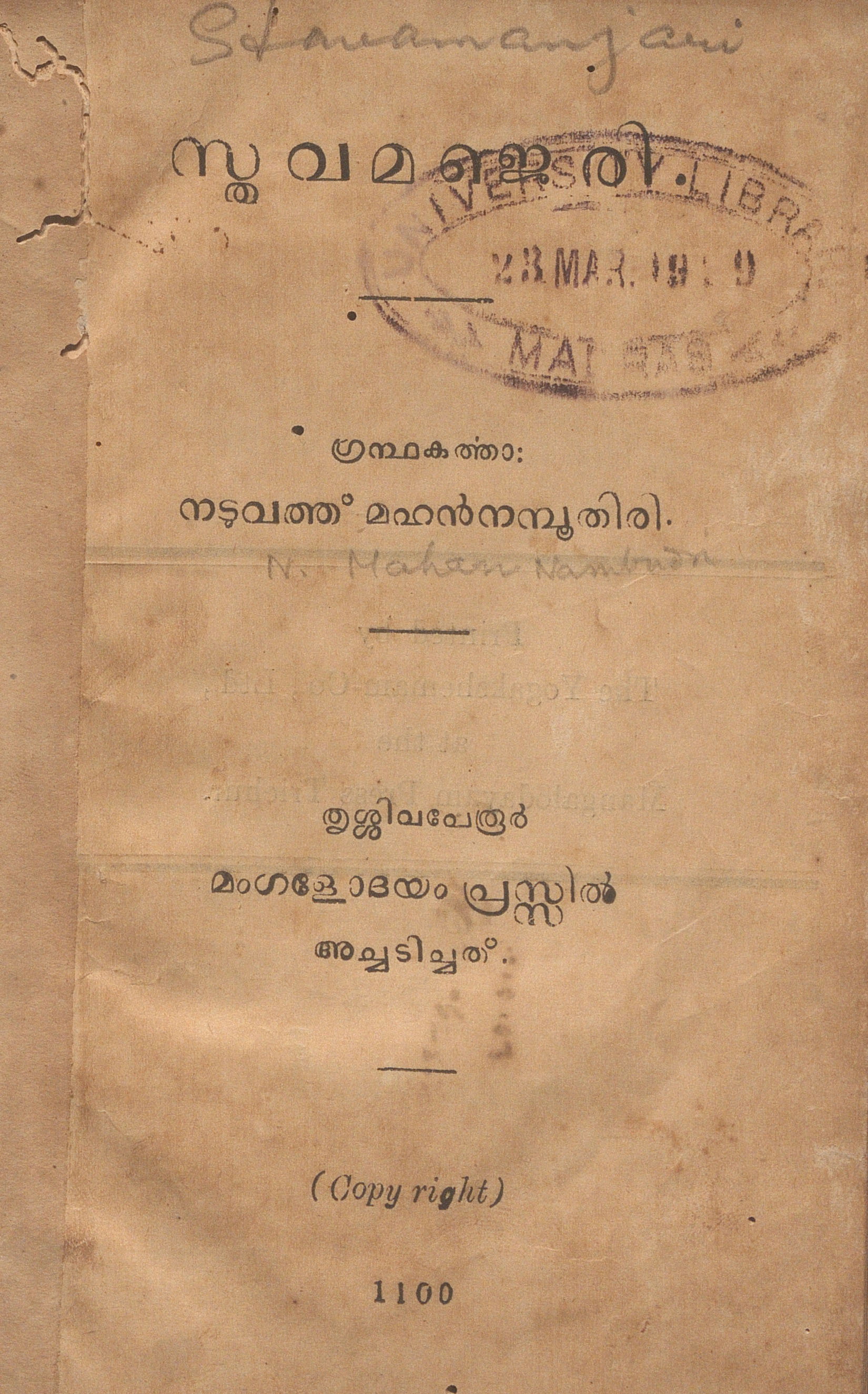 പി ഗോവിന്ദപ്പിള്ള ലൈബ്രറിയിൽ നിന്നാണ് ഈ പുസ്തകം ഡിജിറ്റൈസേഷനു വേണ്ടി ലഭ്യമായത്.
