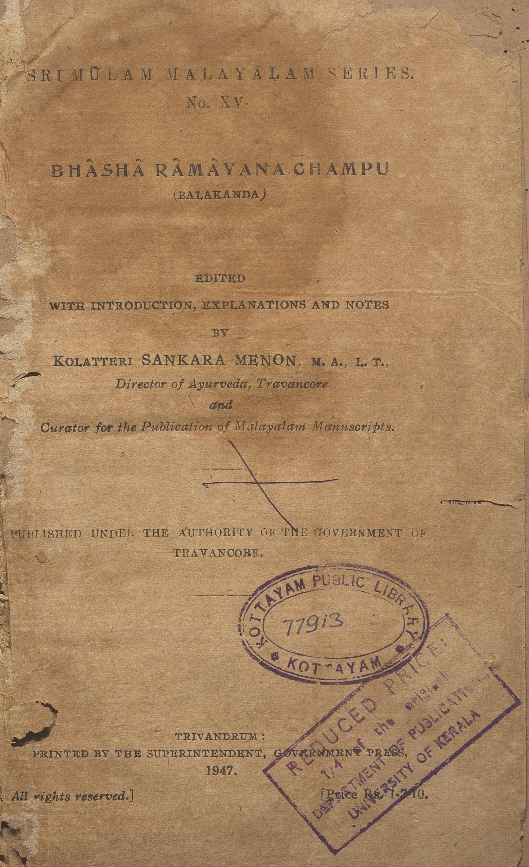 കോട്ടയം പബ്ലിക്ക് ലൈബ്രറി ഡിജിറ്റൈസേഷൻ പദ്ധതിയിൽ നിന്നുള്ള സ്കാൻ ആണിത്.
