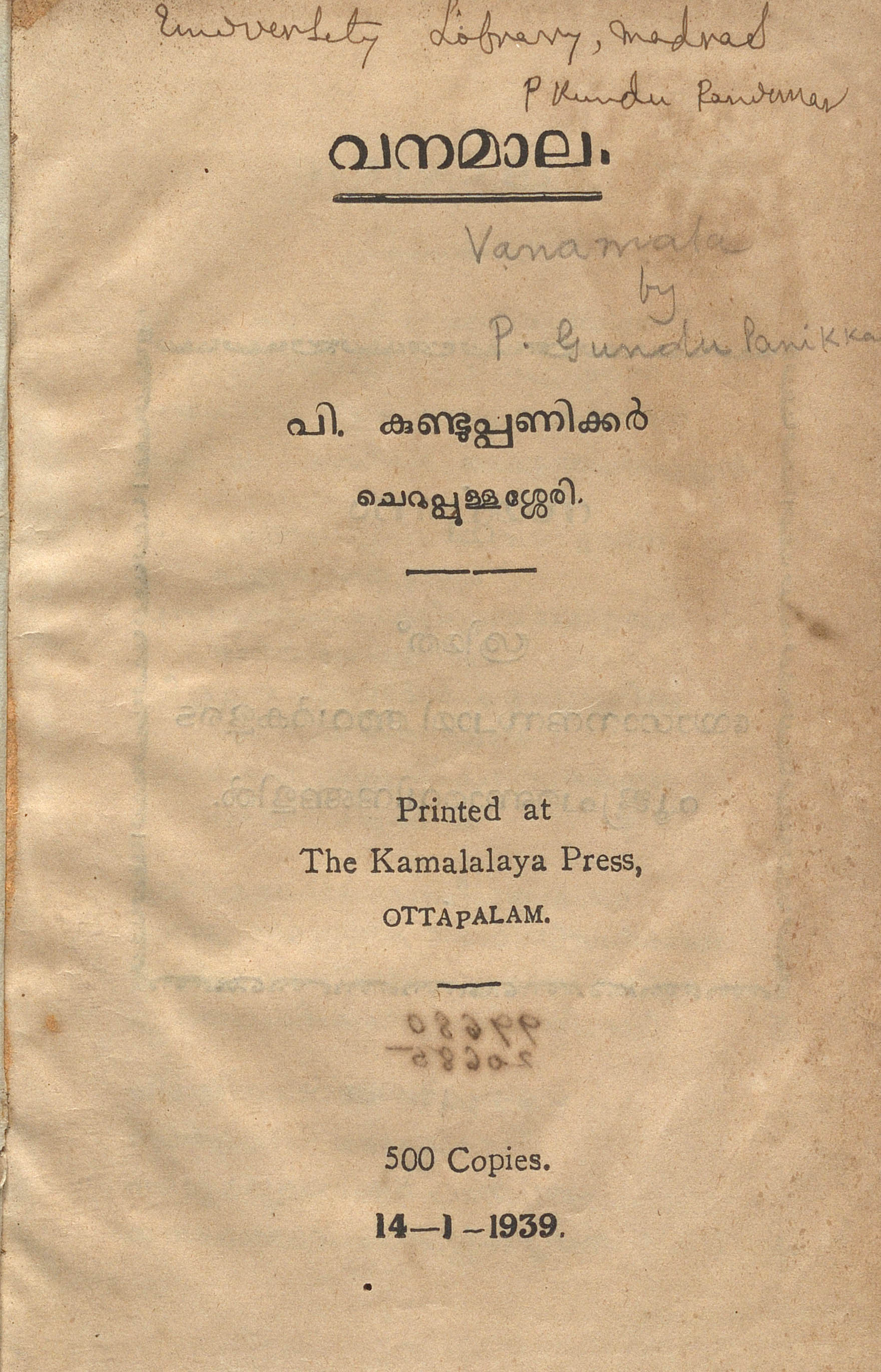 - അച്ചടി: Vidyavinodini Achukoodam,Thrissivaperoor