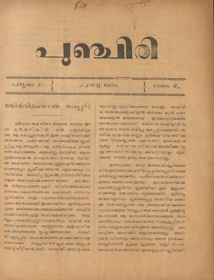 - 1925 ഒക്ടോബർ – 1101 തുലാം (Vol. 5, no. 3) കണ്ണി