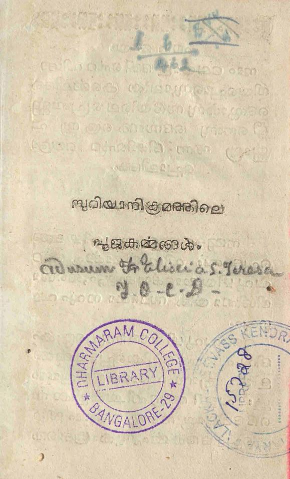 • പേര്: സുറിയാനിക്രമത്തിലെ പൂജാകൎമ്മങ്ങൾ
