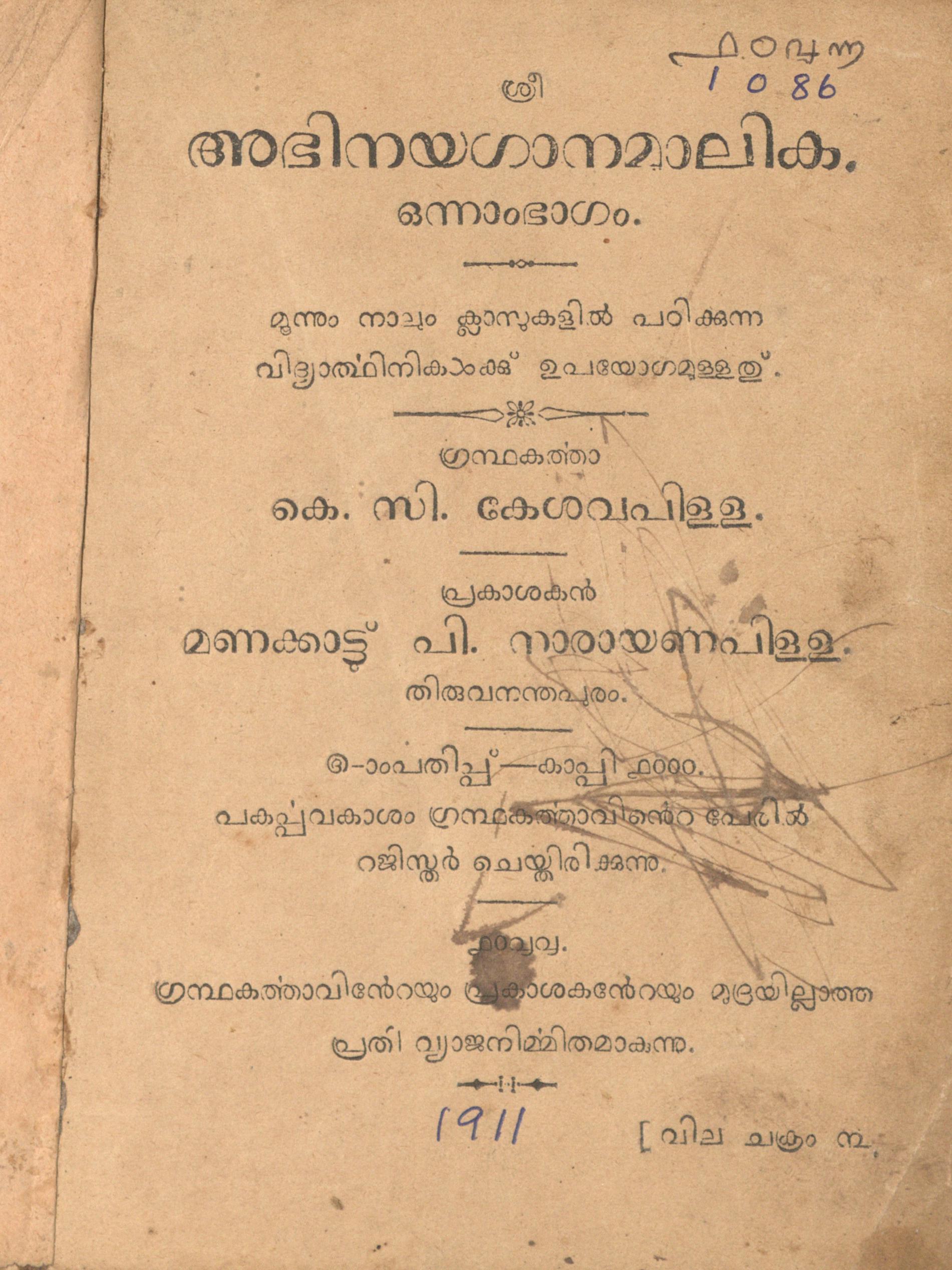 - അച്ചടി: സർക്കാർ അച്ചുകൂടം,തിരുവനന്തപുരം