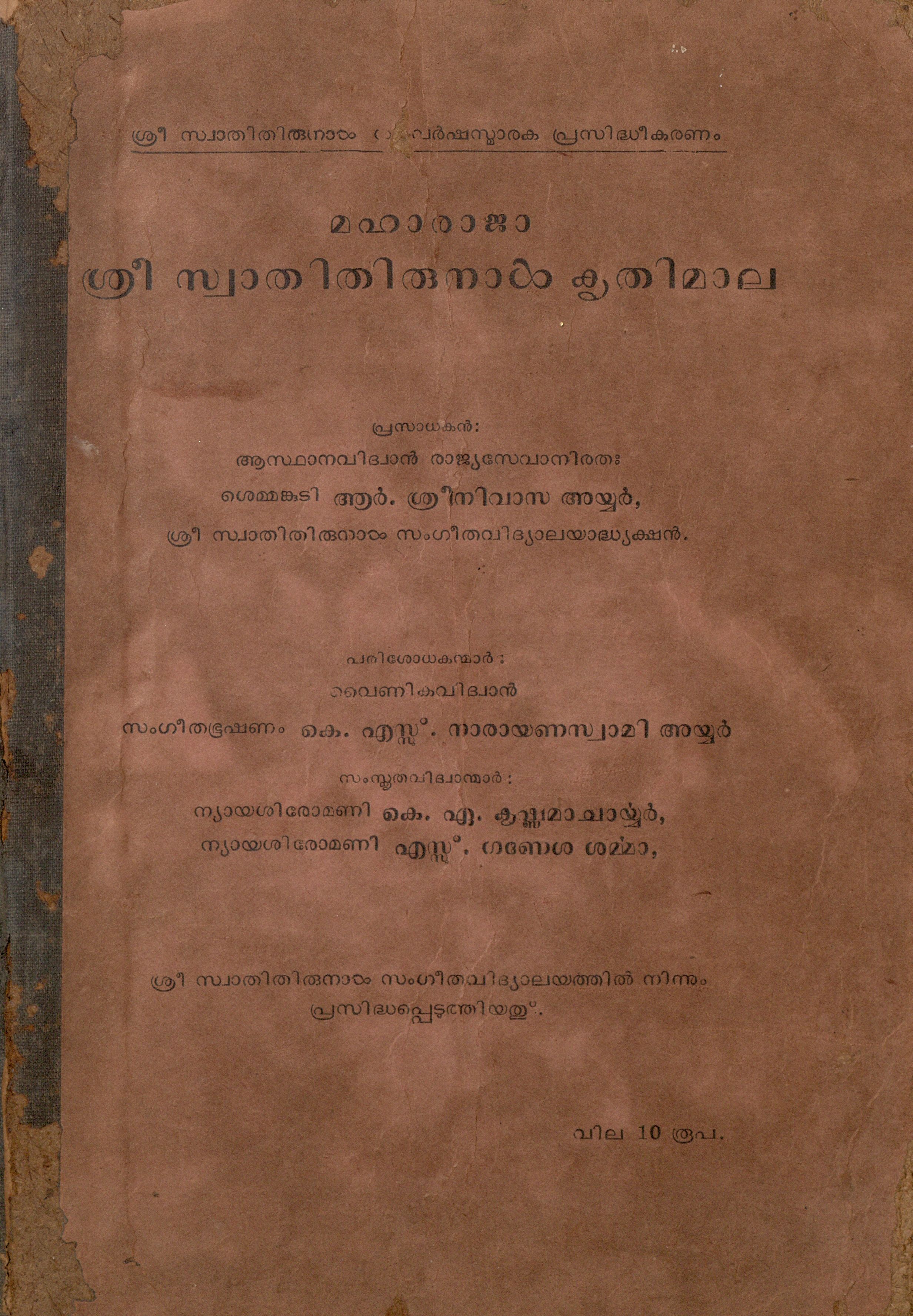 1969-ൽ പ്രസിദ്ധീകരിച്ച, മഹാരാജ ശ്രീ സ്വാതി തിരുനാൾ കൃതിമാല എന്ന പുസ്തകത്തിൻ്റെ സ്കാൻ ആണ് ഈ പോസ്റ്റിലൂടെ പങ്കു വെക്കുന്നത്.