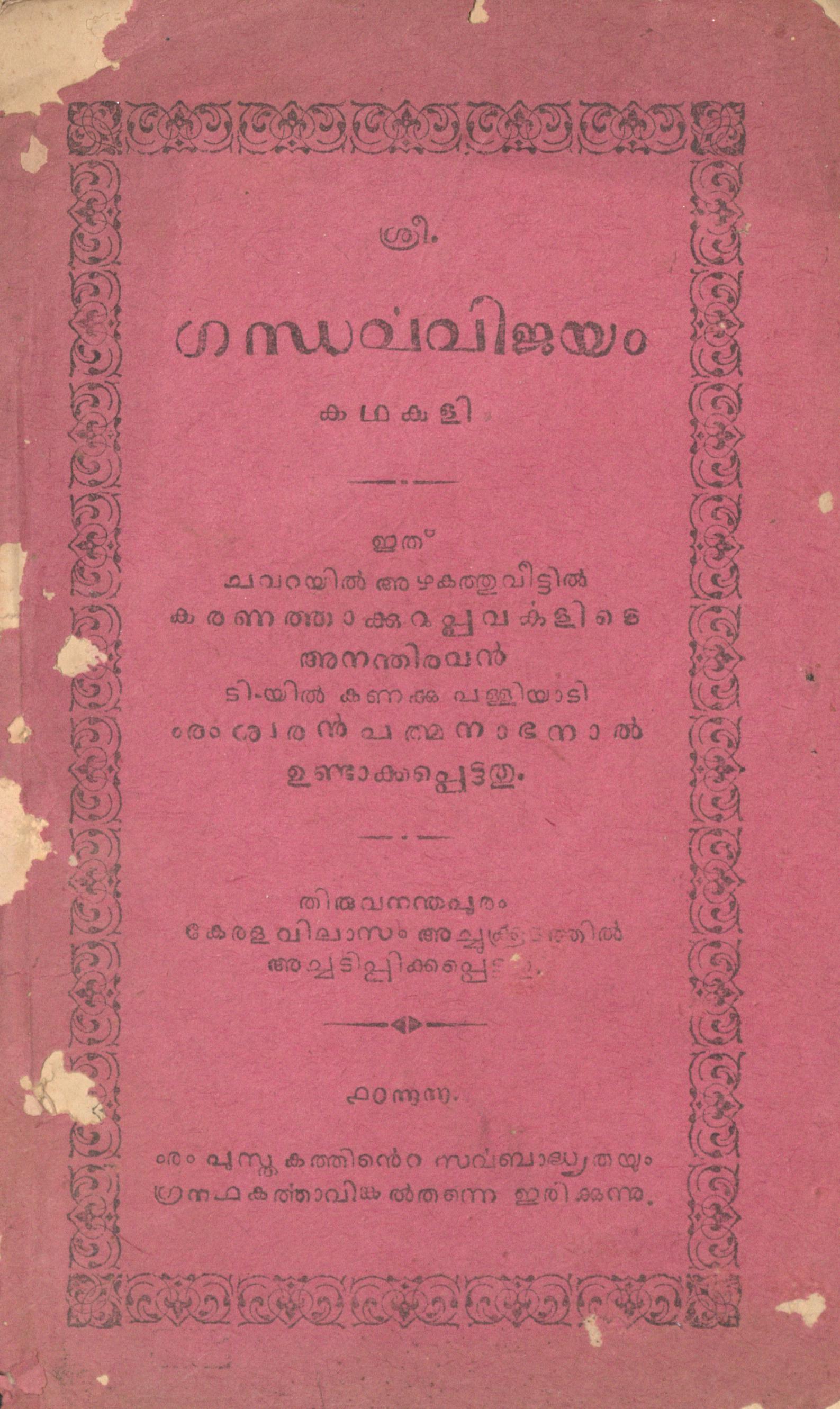 - അച്ചടി: Aksharalankaram Press, Kaithamukk, Thiruvananthapuram