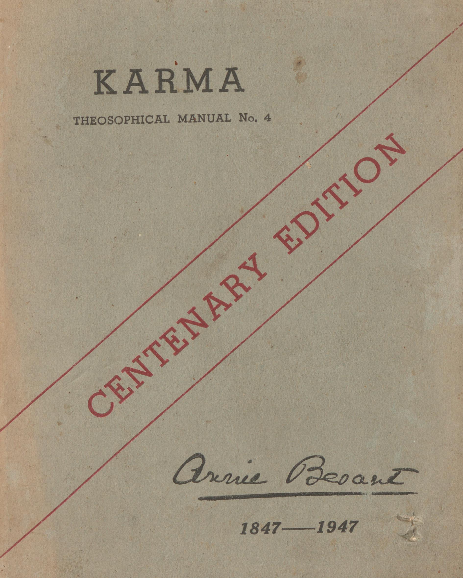 - Name: KARMA – Theosophical Manual No. 4