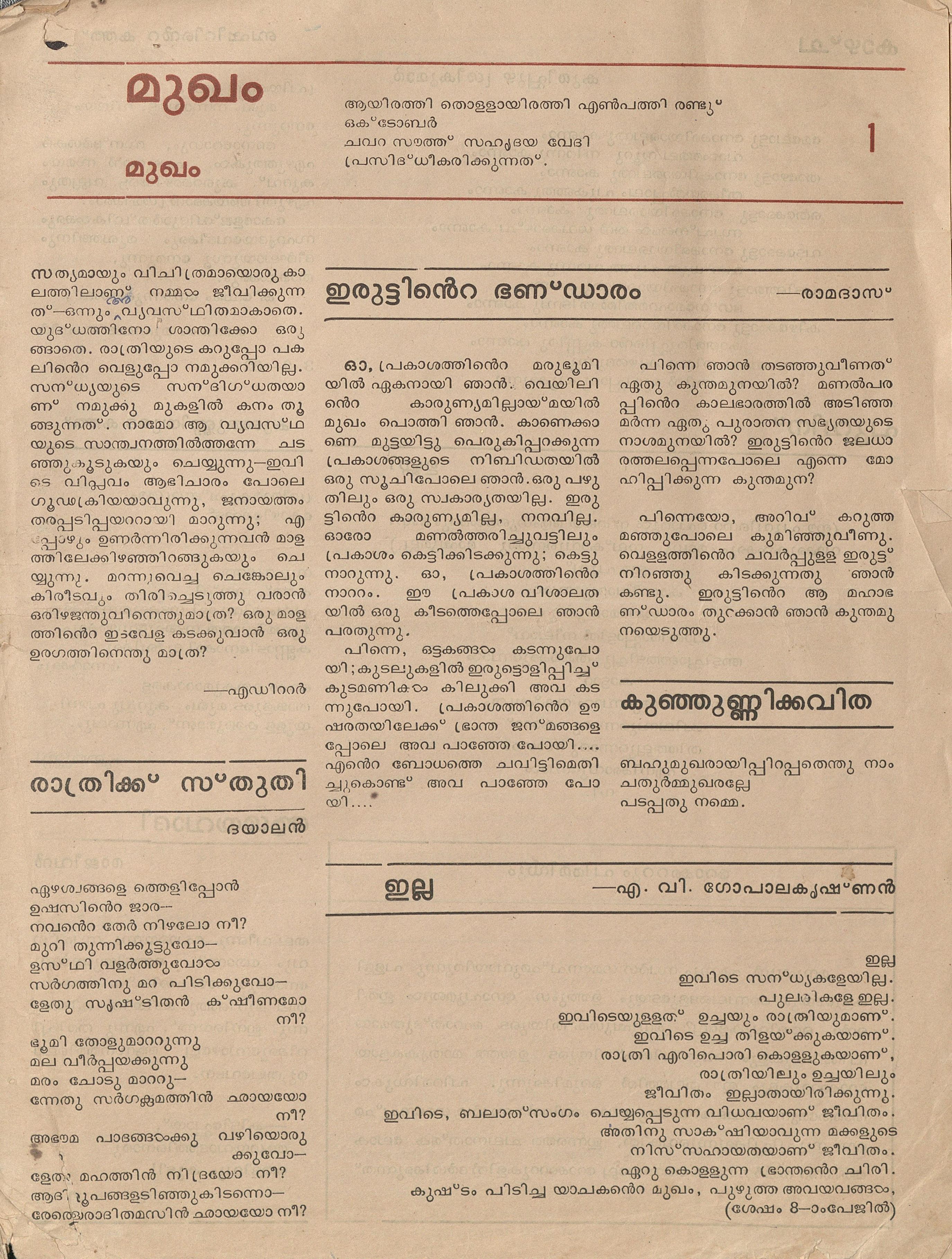 1989-ൽ പ്രസിദ്ധീകരിച്ച, കൊല്ലം ടി. കെ. എം കോളേജ് മാഗസിൻ്റെ സ്കാൻ ആണ് ഈ പോസ്റ്റിലൂടെ പങ്കു വെക്കുന്നത്
