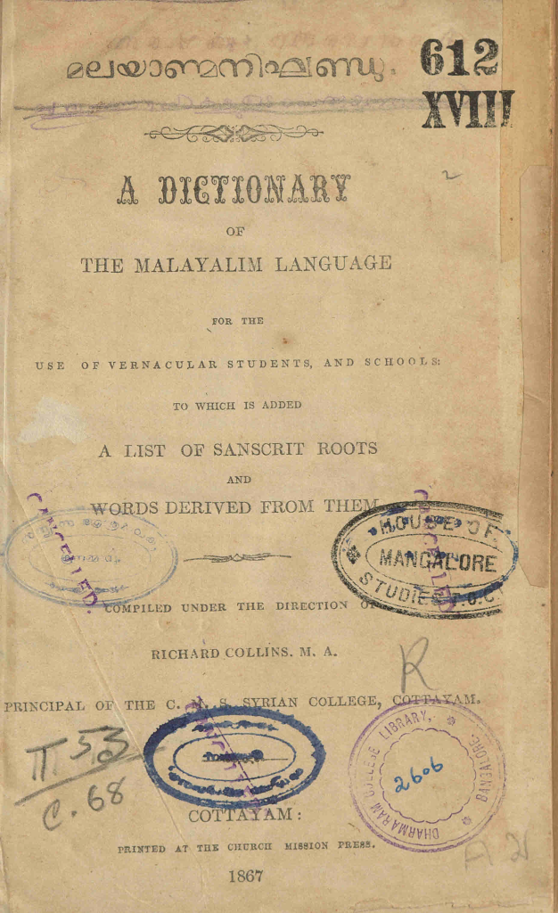 അച്ചടിച്ച ആദ്യത്തെ മലയാളം – മലയാളം നിഘണ്ടുവായ മലയാണ്മനിഘണ്ടു എന്ന പുസ്തകത്തിൻ്റെ ഡിജിറ്റൽ സ്കാനാണ് ഈ പോസ്റ്റിലൂടെ റിലിസ് ചെയ്യുന്നത്. സി.എം.എസ് മിഷനറി ആയ റവറൻ്റ് റിച്ചാർഡ് കോളിൻസ് ആണ് ഇതിൻ്റെ രചയിതാവ്
