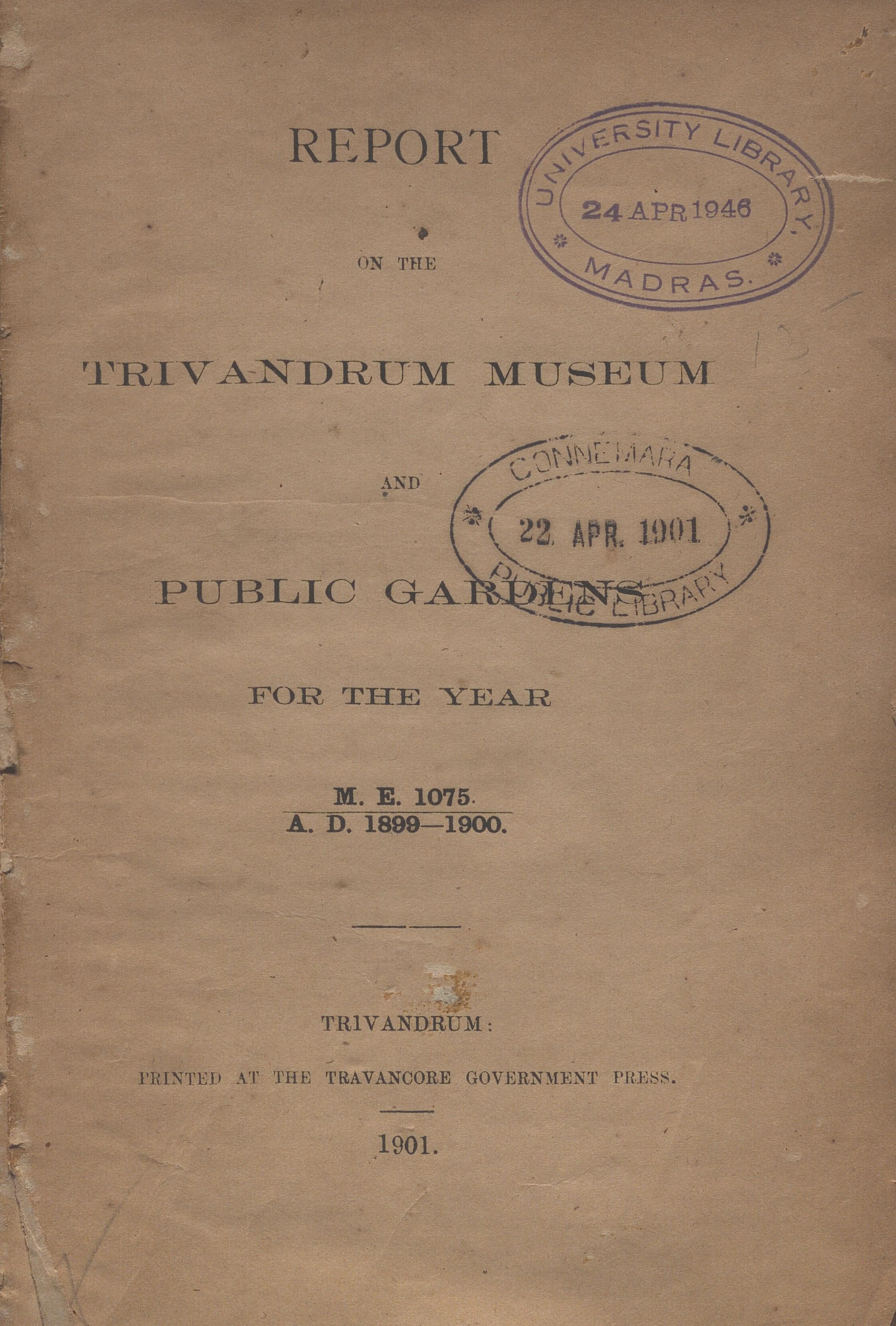 Through this post, we are releasing the digital scans of Report on the Trivandrum Museum and Public Gardens published from the year  1901 to 1905.